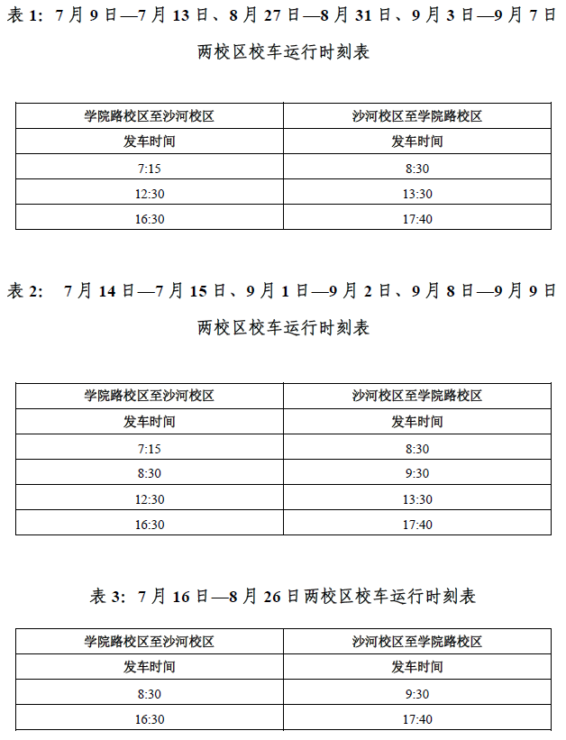 (三)7月16日(星期一)—8月26日(星期日)按表3运行;